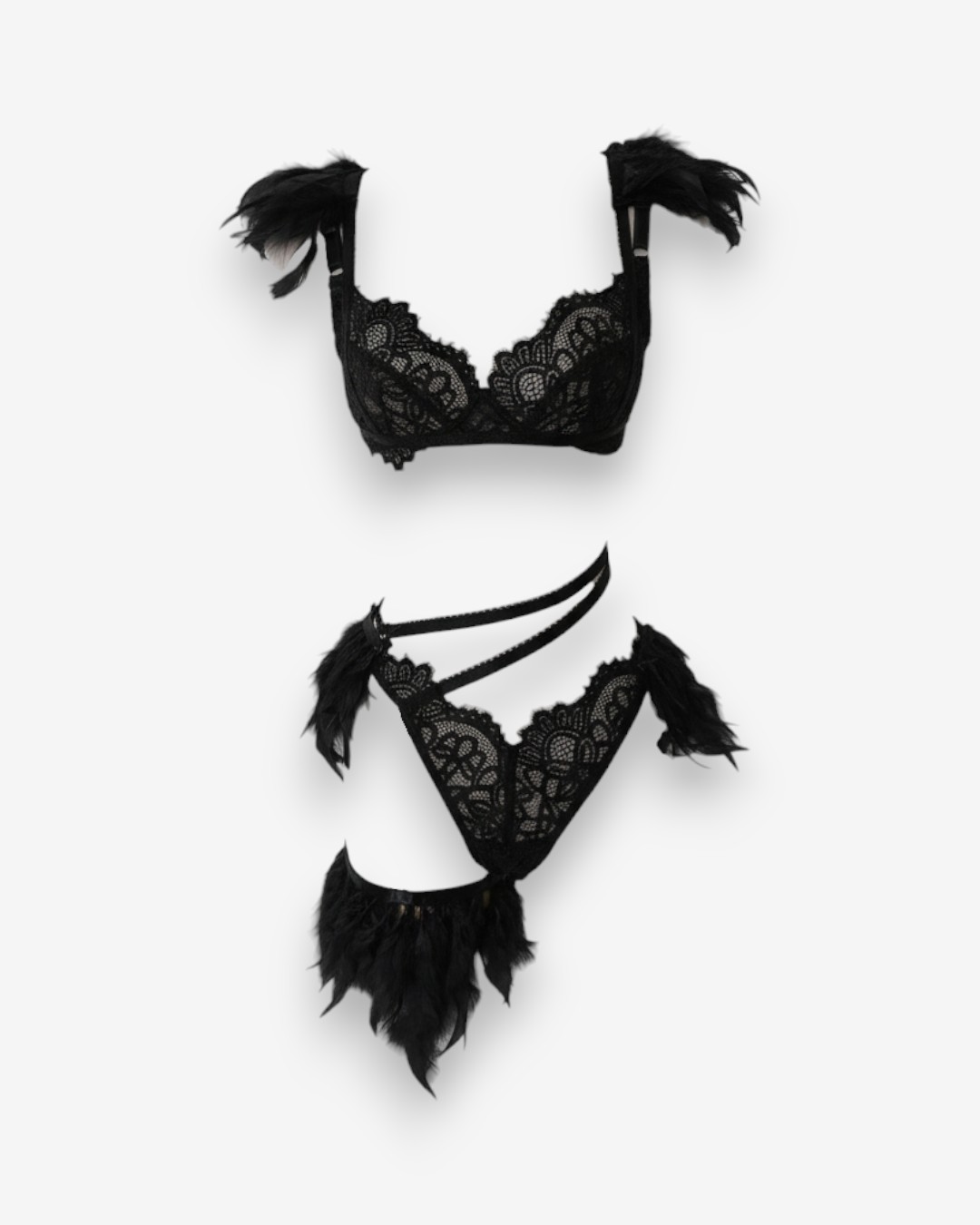 Set de angel color blanco, delicado y celestial o en color negro, misterioso y seductor.